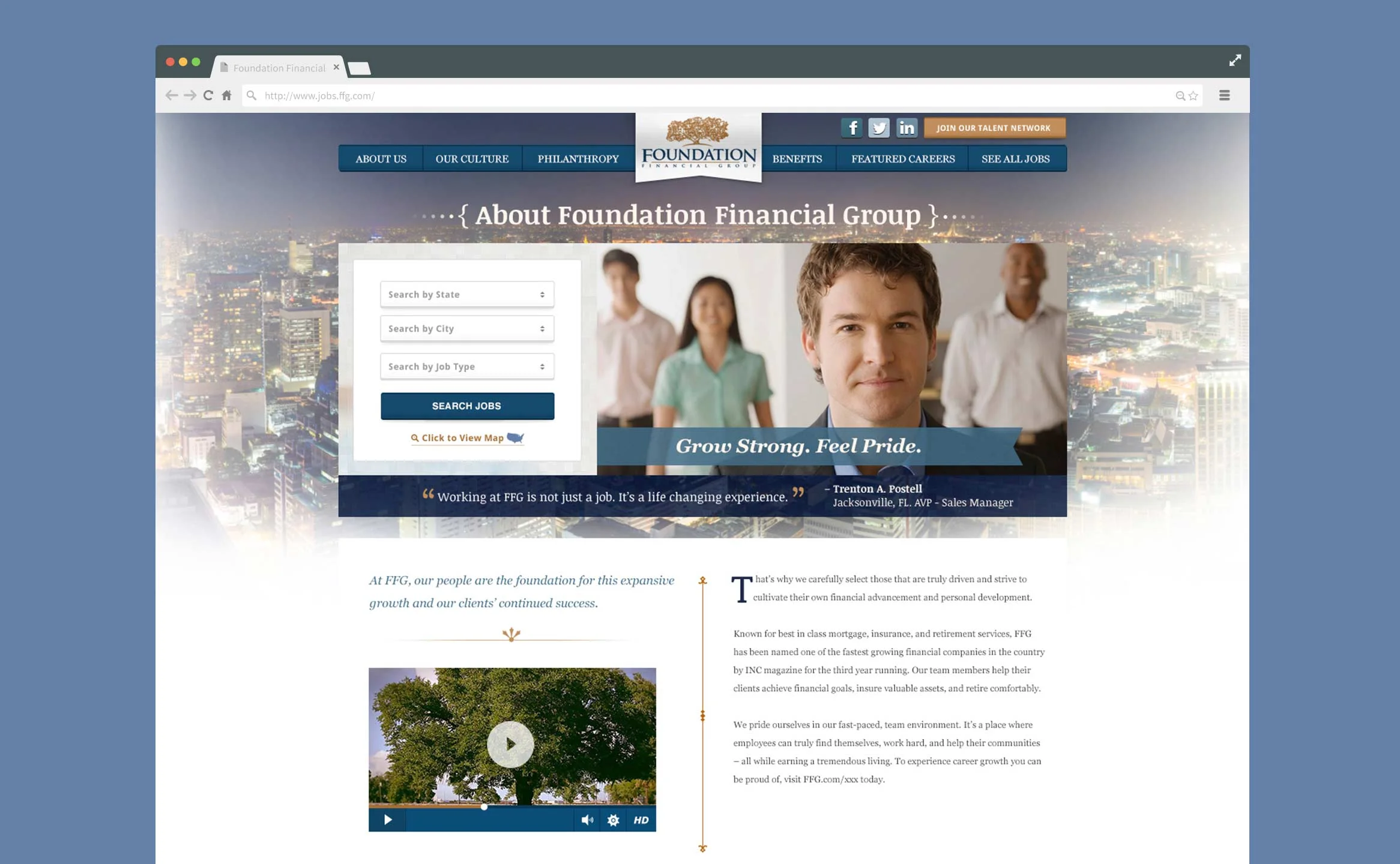 Foundation Financial Group was founded in 2004 and is a financial company that deals in mortgage, insurance and retirement services. FFG needed a career site that was able to highlight their locations across the country.